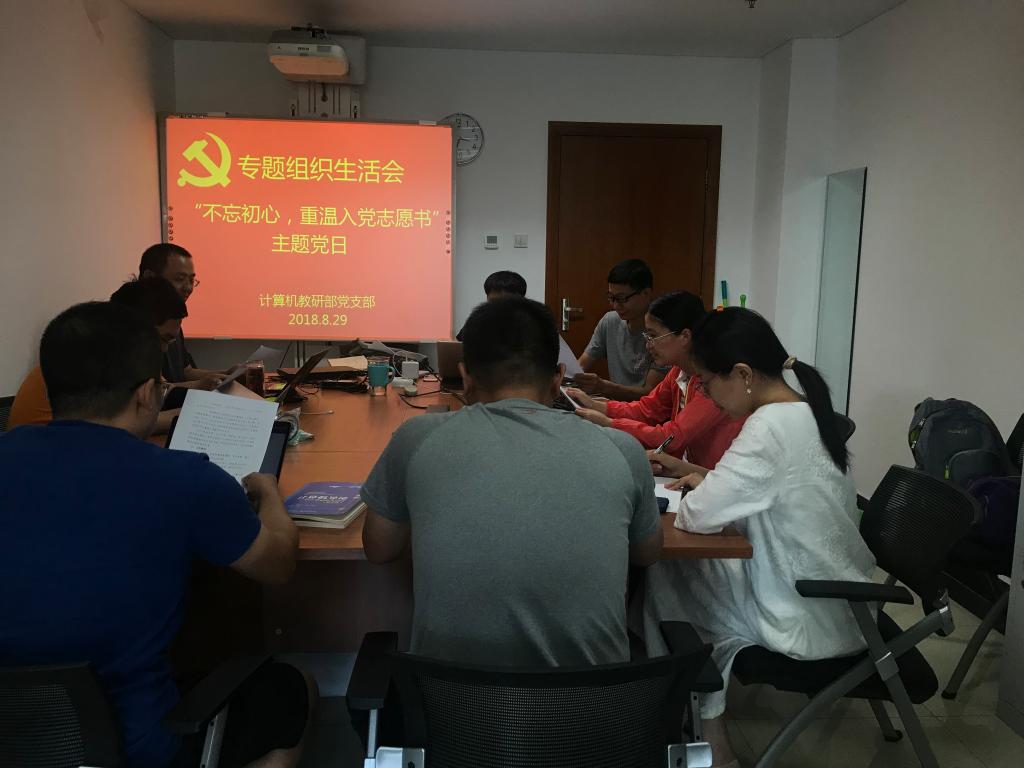 计算机教研党支部自2018年7月收到“关于开展“不忘初心,重温入党志愿书”主题党日活动的通知“,党支部支委会开会商讨了此专题主题党日活动如何开展的问题,具体措施如下: